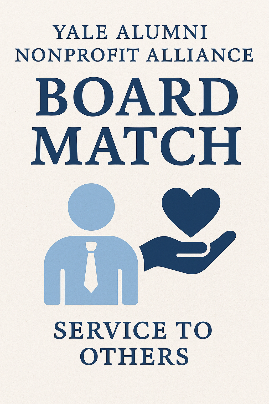 Board service is one of the most meaningful forms of giving back. You’re not just writing a check, you’re lending your strategic thinking, professional experience, governance wisdom, and network to help an organization thrive. Throughout 2025, 17 exceptional nonprofits participated in YANA’s Board Match events, seeking Yale alumni ready to put their expertise in service to mission-driven work. Whether you bring financial acumen, legal expertise, marketing savvy, fundraising experience, or deep knowledge of a particular issue, there’s an organization whose mission could benefit from your service. Below are the organizations from our 2025 cohort, many still building their boards or with openings in 2026.